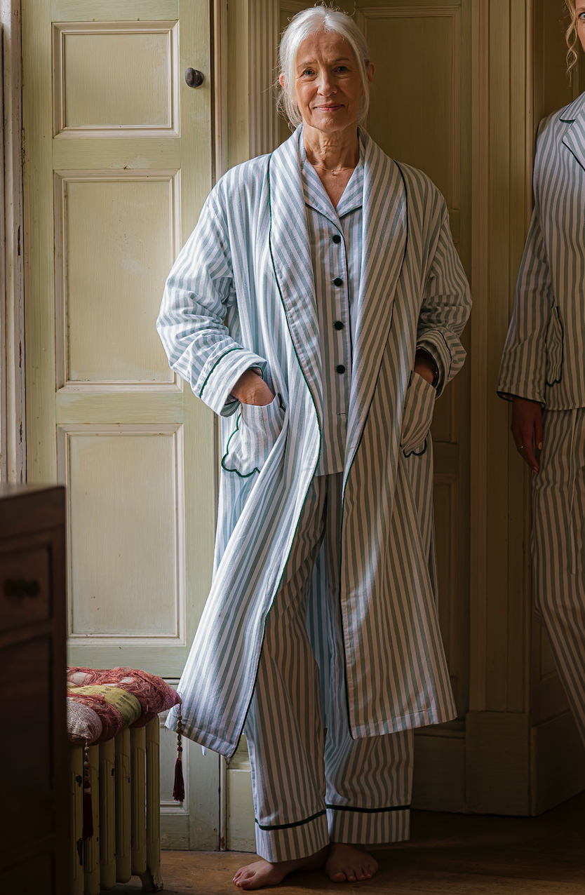 Green Striped Brushed Cotton Robe