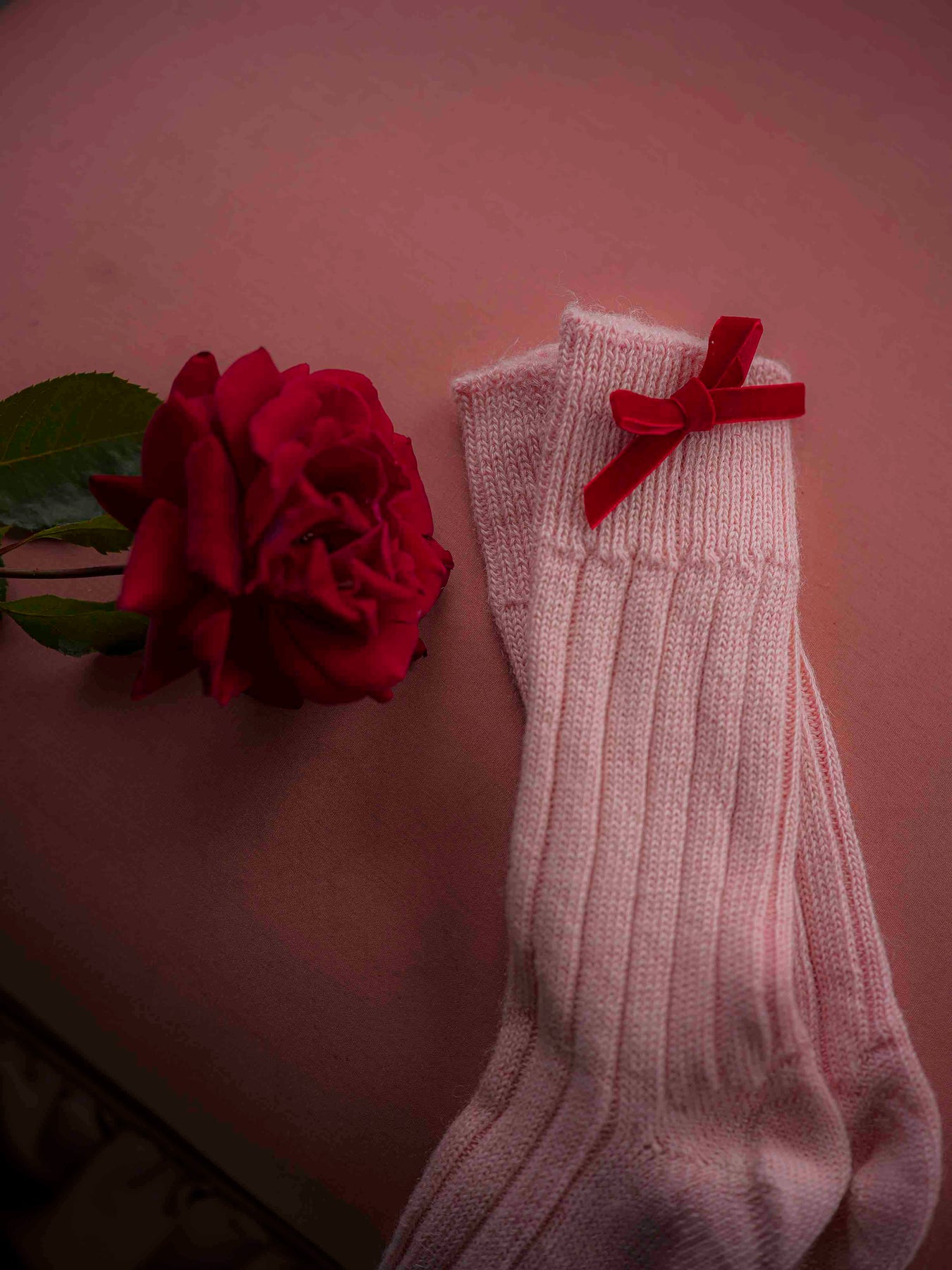 Theses Alpaca bed socks are made from 90% alpaca wool knitted in the UK with a ribbed design and finished with a velvet red bow.